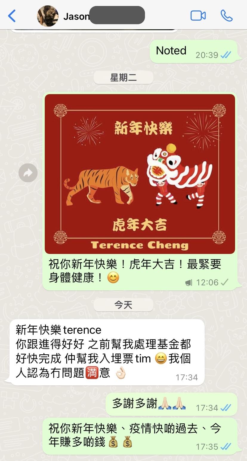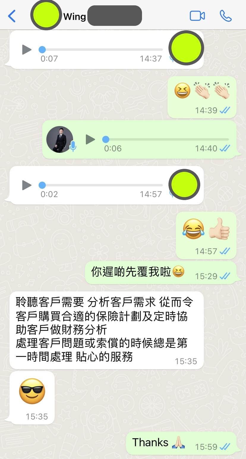 曹太太曾遇過不愉快的保險經歷,由5年前開始接手曹太太的個案 (俗稱:孤兒單),逐漸令她從拾對保險理財的信任,及相信保險理財對她的價值。